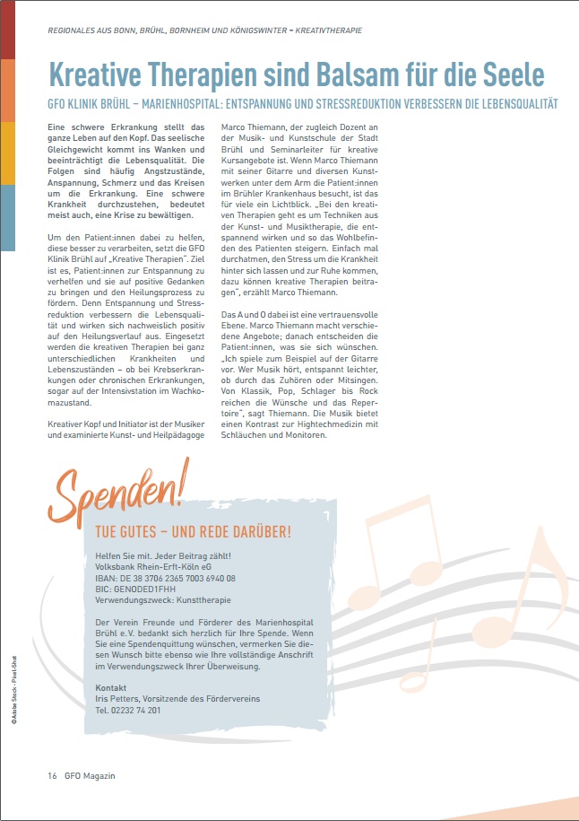 Artikel Brühler Bilderbogen 1: Balsam für die Seele · Was bringen Kunst- und Musiktherapie dem Patienten im Krankenhaus?